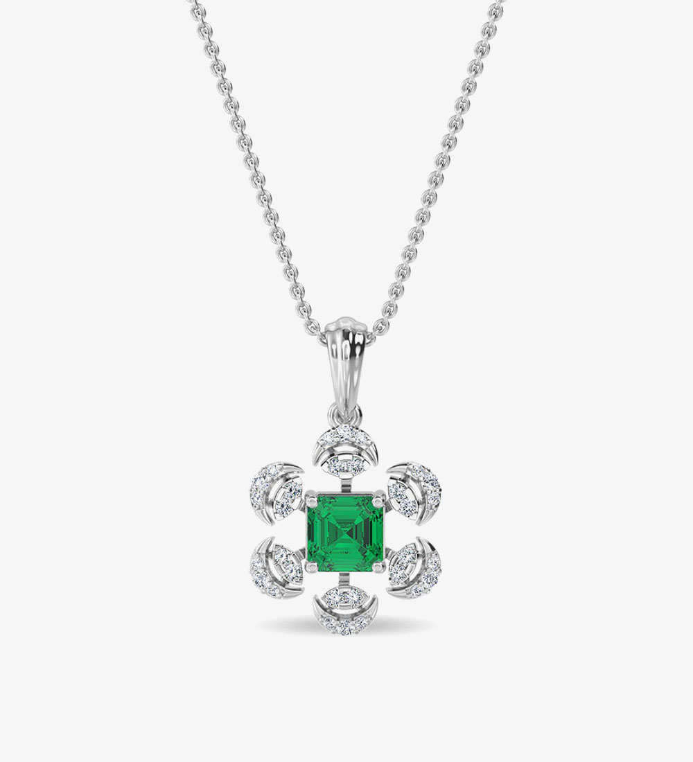 Craftsmanship and Detail: Our skilled artisans have crafted this necklace with precision and attention to detail. The 18k white gold setting provides a luxurious backdrop for the gemstones, creating a piece that is not only beautiful but also built to last.